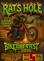 (9/20/2025)RatsHole Bike Show, October 18 on Saturday behind the old remains of a Harley dealership on Beach Street(Indian/Slingshot) in Daytona Beach. Look for the big American flag on a big flag pole in the heart of Daytona Beach. 2,500 feet from Main Street bridge and 4,500 feet from Main Street.